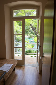 The balcony is right outside the bedroom and has a stunning view out on the big lake "Veliko Jezero" and no less then 4 m to the shore!