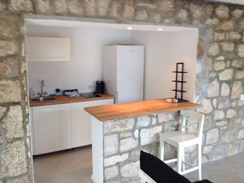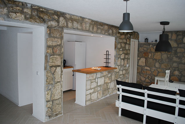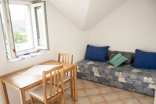 This apartment contains one bedroom for with a double bed, and one sleeping couch for an additional person.