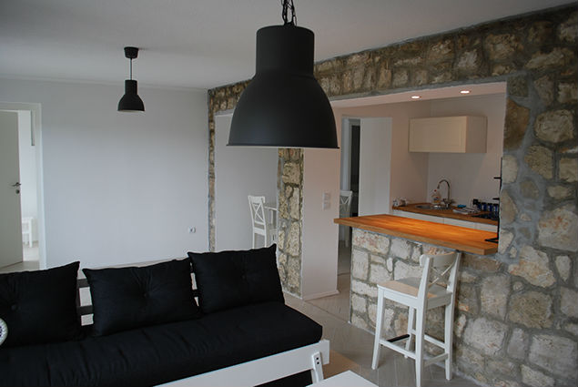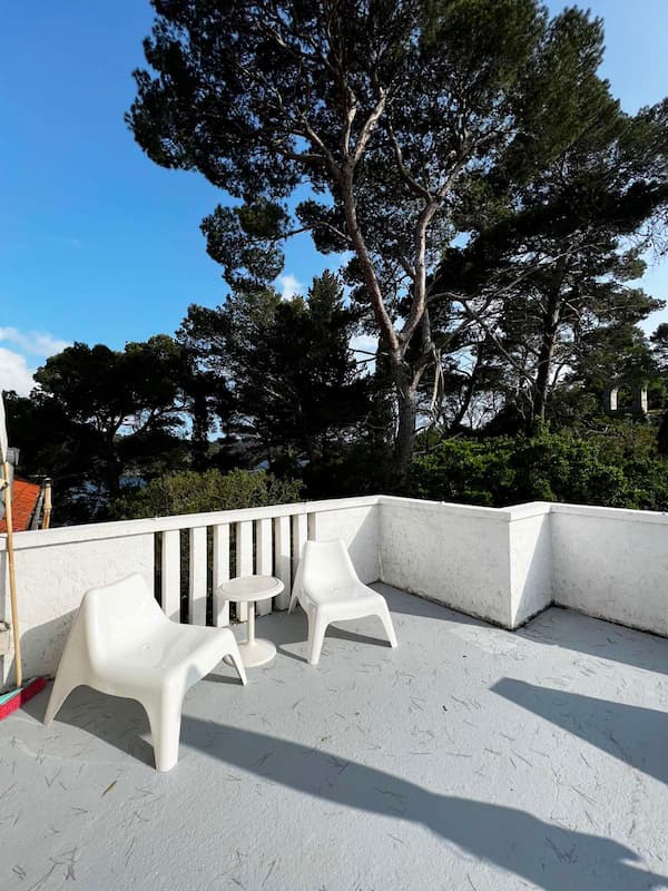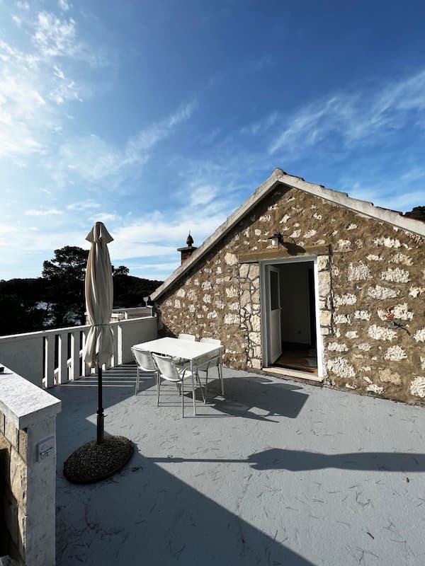 This apartment contains one bedroom and stretching couch, and it has a big terrace.