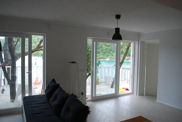 The balcony is right outside the bedroom and has a stunning view out on the big lake "Veliko Jezero" and no less then 4 m to the shore!